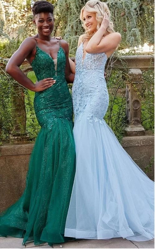 Jovani JVN07398 Plunging Neck Trumpet-Style Dress