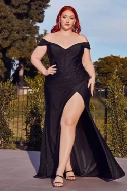 LaDivine CC2212 High Slit Off The Shoulder Dress