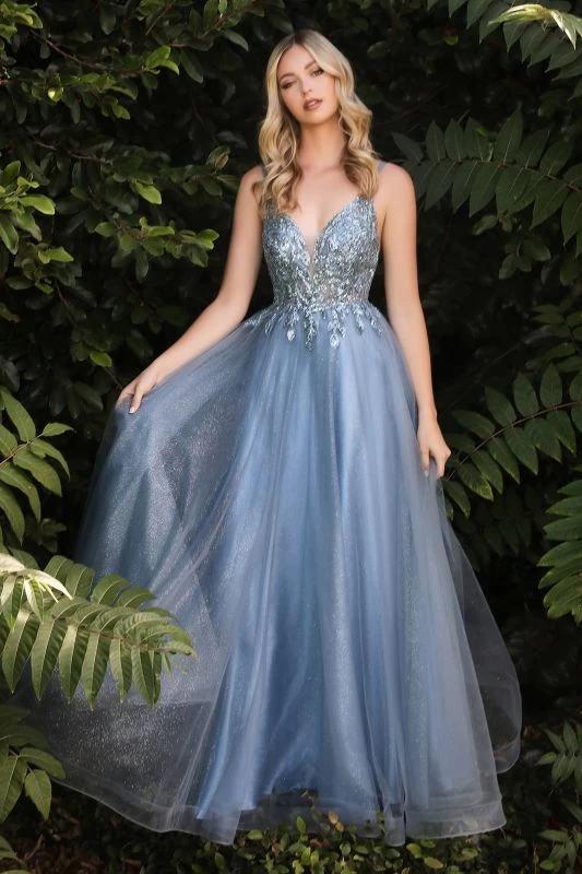 LaDivine by Cinderella Divine CD0154 Strappy Back Lace Bodice Long Party Dress