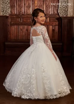 Rachel Allan RB9132 Lace Sleeve Scoop Neck Flower Girl Dress