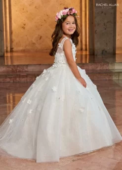 Rachel Allan RB9131 Floral Appliques Cutout Back Flower Girl Dress