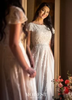 Modest Bridal By Mon Cheri TR12022 Short Sleeve Wedding Dress