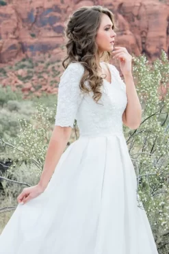 Modest Bridal By Mon Cheri MOD222 Illusion Sleeve Lace Bridal Dress