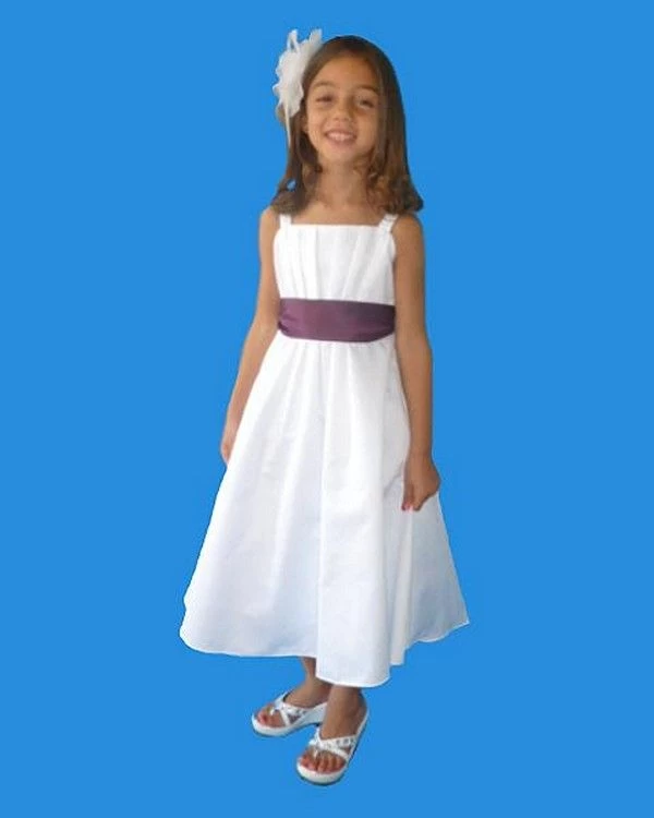 RoseBud 5119 Flower Girl Dress Style 5119 is a satin tank style T length dress with a pleated bodice. Waist is accented with a satin sash with self-tying streamers. Satin buttons cover the zipper.