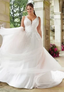 Mori Lee 3286 Sigourney Plunging Neckline Plus Size Wedding Gown